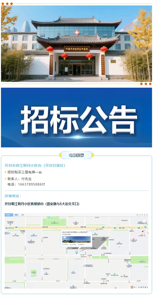 【招标】河南开封自贸区“倪海厦中医院”公开招标三层电梯一台