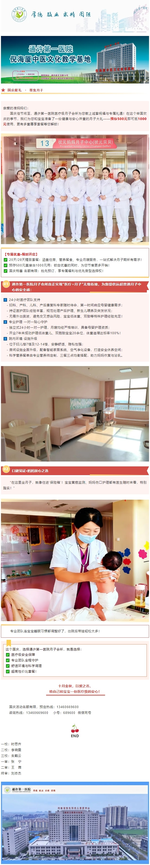 【国庆献礼 · 尊宠月子】通许第一医院医疗级月子会所盛大优惠!让您安心坐月子!