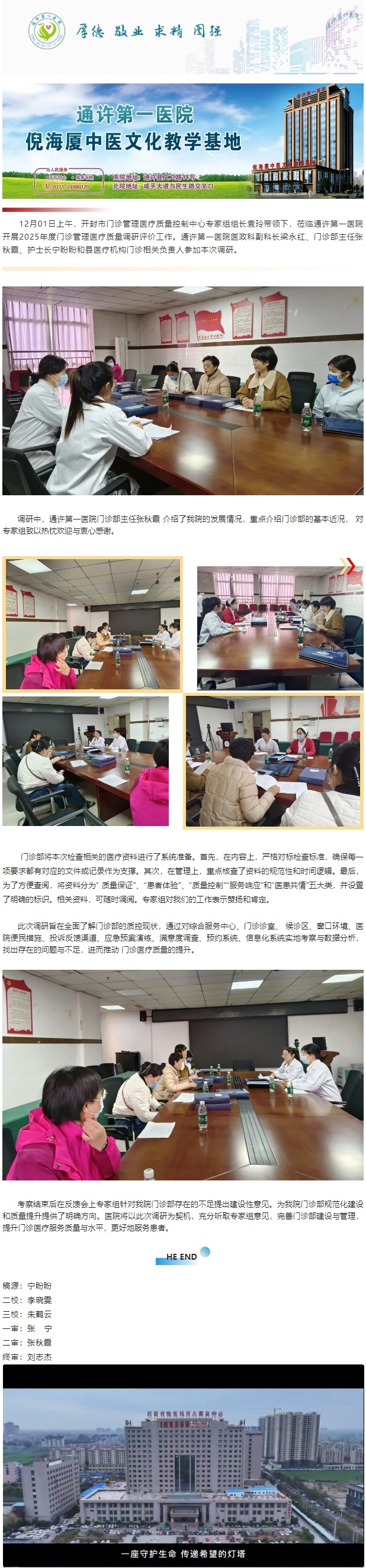 【新闻快讯】开封市门诊管理医疗质量控制中心专家组莅临通许第一医院开展2025年度门诊管理医疗质量调研