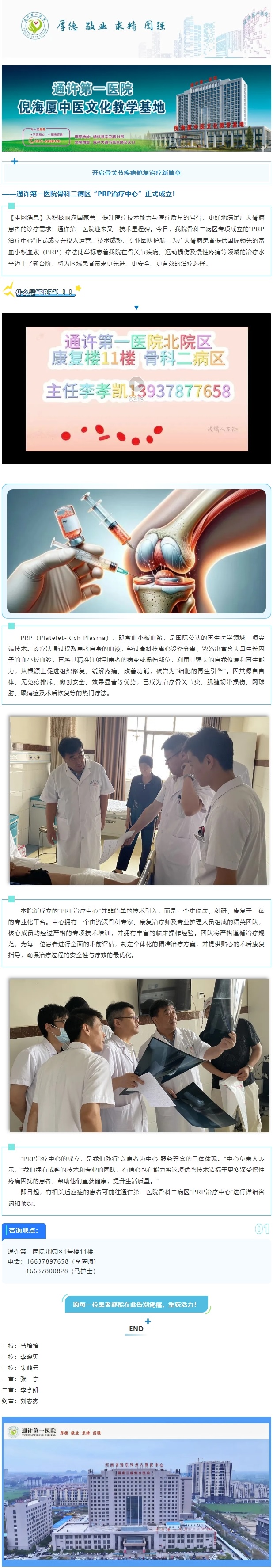 【新技术科普】通许第一医院骨科二病区“PRP治疗中心”正式成立!